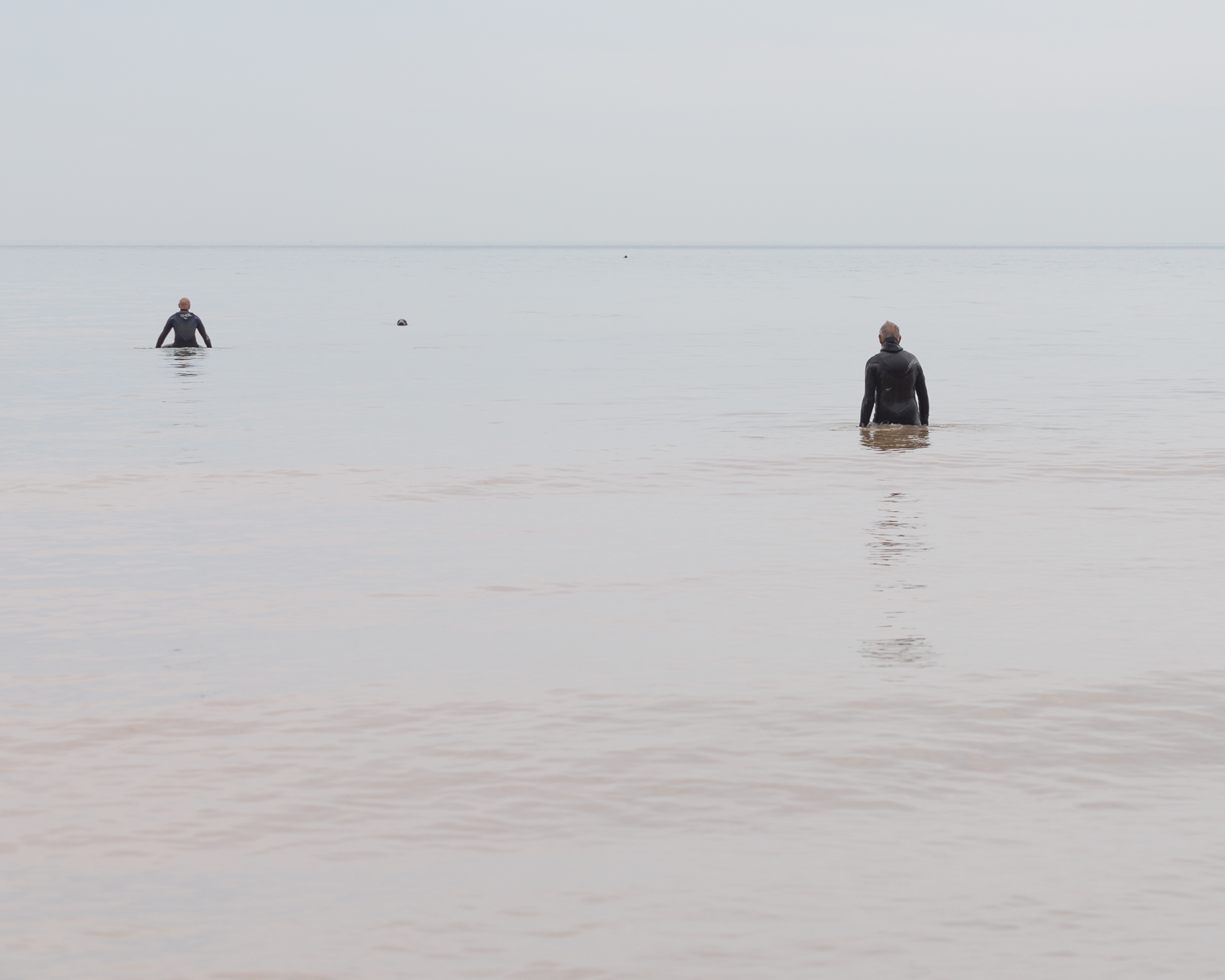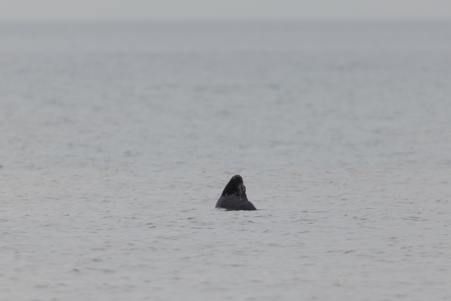 The log was still in place when i got there, It had been in the same spot for about half hour, and there was now some concern that it might be caught in a net or injured in some way. So I (bravely) volunteered to roll up my trousers, wade in a little and take a few photos, whilst Paul had the far easier and safer job of putting on his wetsuit and paddling out for a closer look, he did this with the help of Roger Backhouse (another old surfer who just happened to be at the beach and going for a paddle) in a sort of vintage surfers version of international rescue.