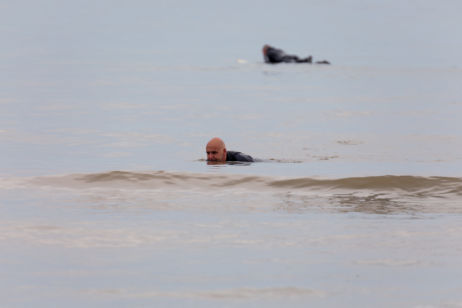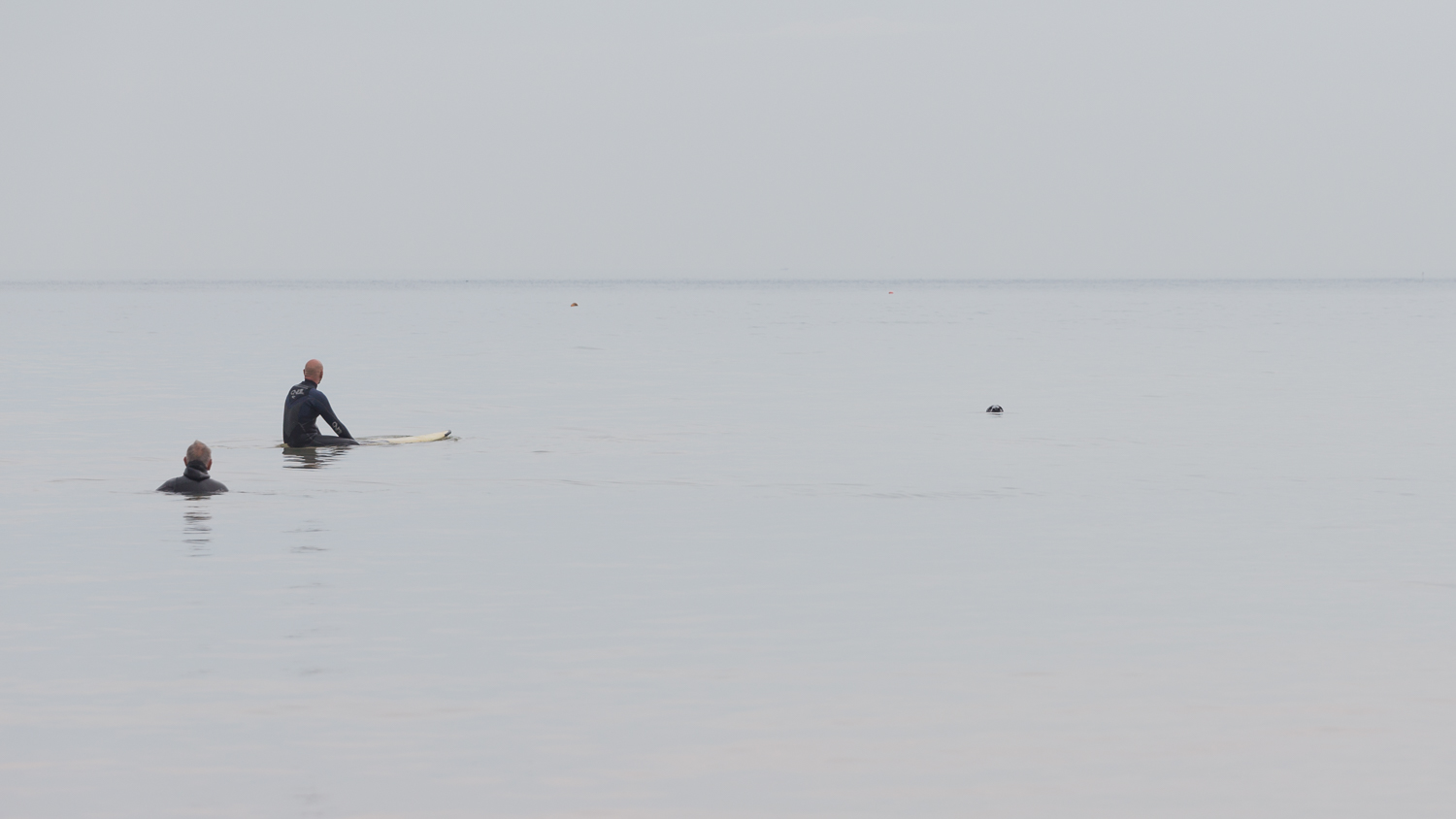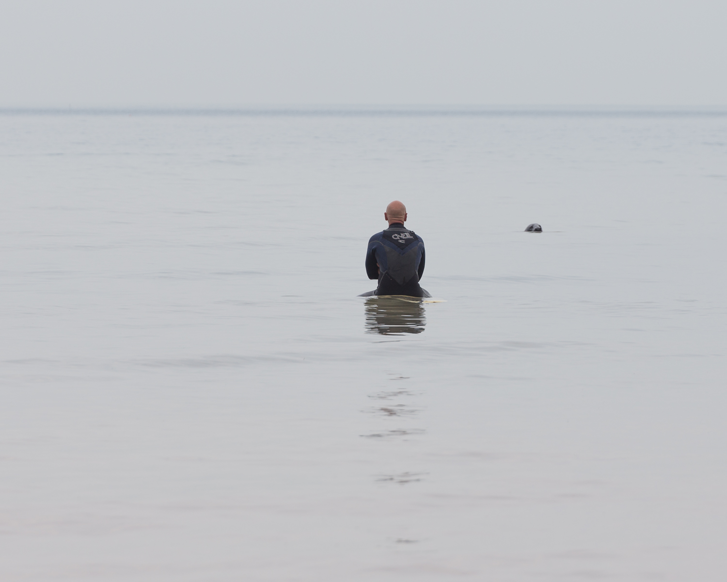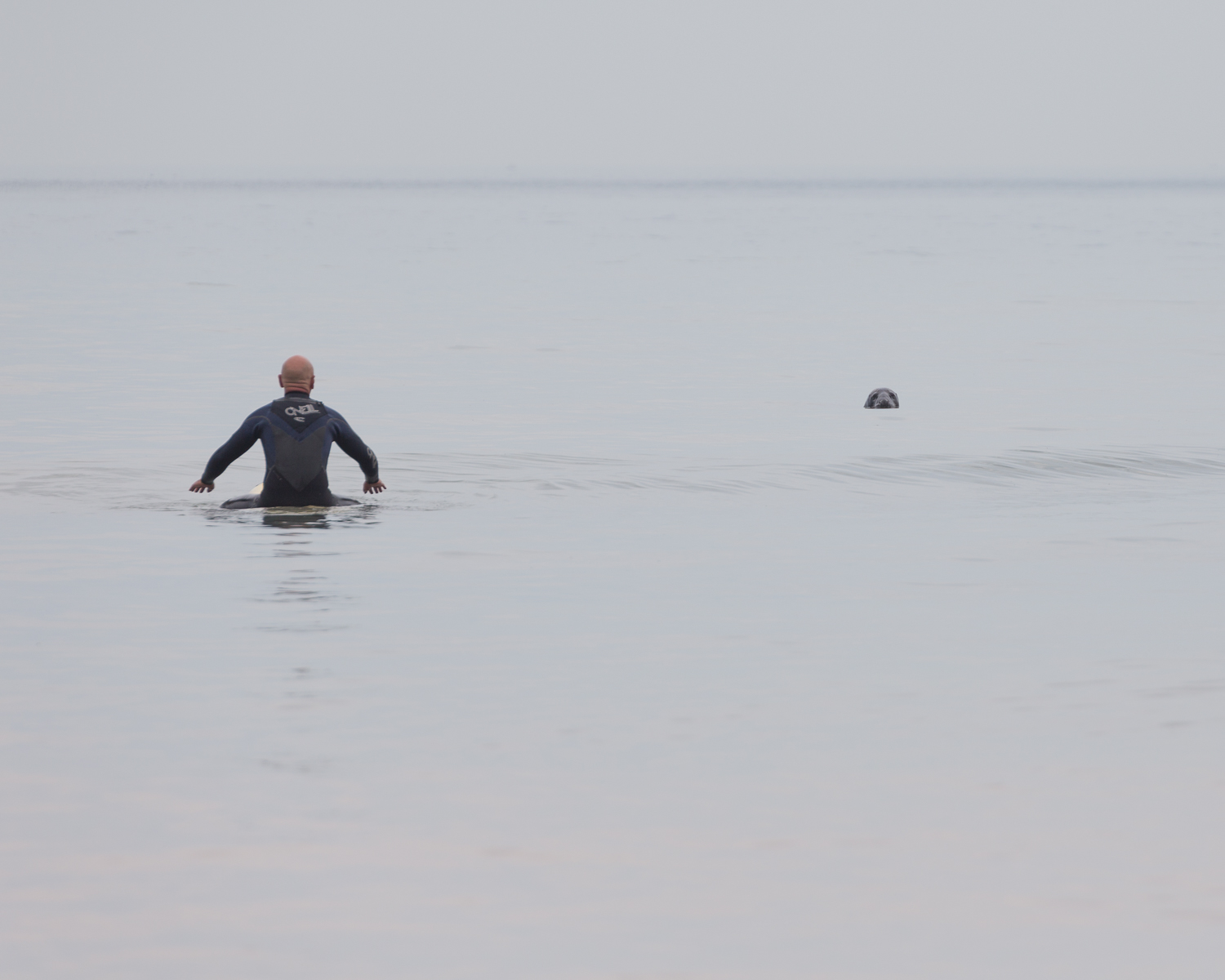 In the end it seems the seal was ok after all and was not tangled up in anything. It initially submerged and moved away when Paul got near (no closer than about 15ft away according to Paul), but then seemed calm and curious as it returned for a closer look at the two humans pretending to be seals. As a photographer I admit that I might have been hoping for a more exciting shoot, perhaps with a randy seal chasing Paul out of the water, but although that wasn’t to be, it was a happy ending of sorts, as the seal was fine and everyone went about their business. I later heard reports via facebook, that a seal fitting a similar description (bloody big head) had been spotted cruising the line up at Sandown when a few people were out enjoying a bit of easterly windswell.