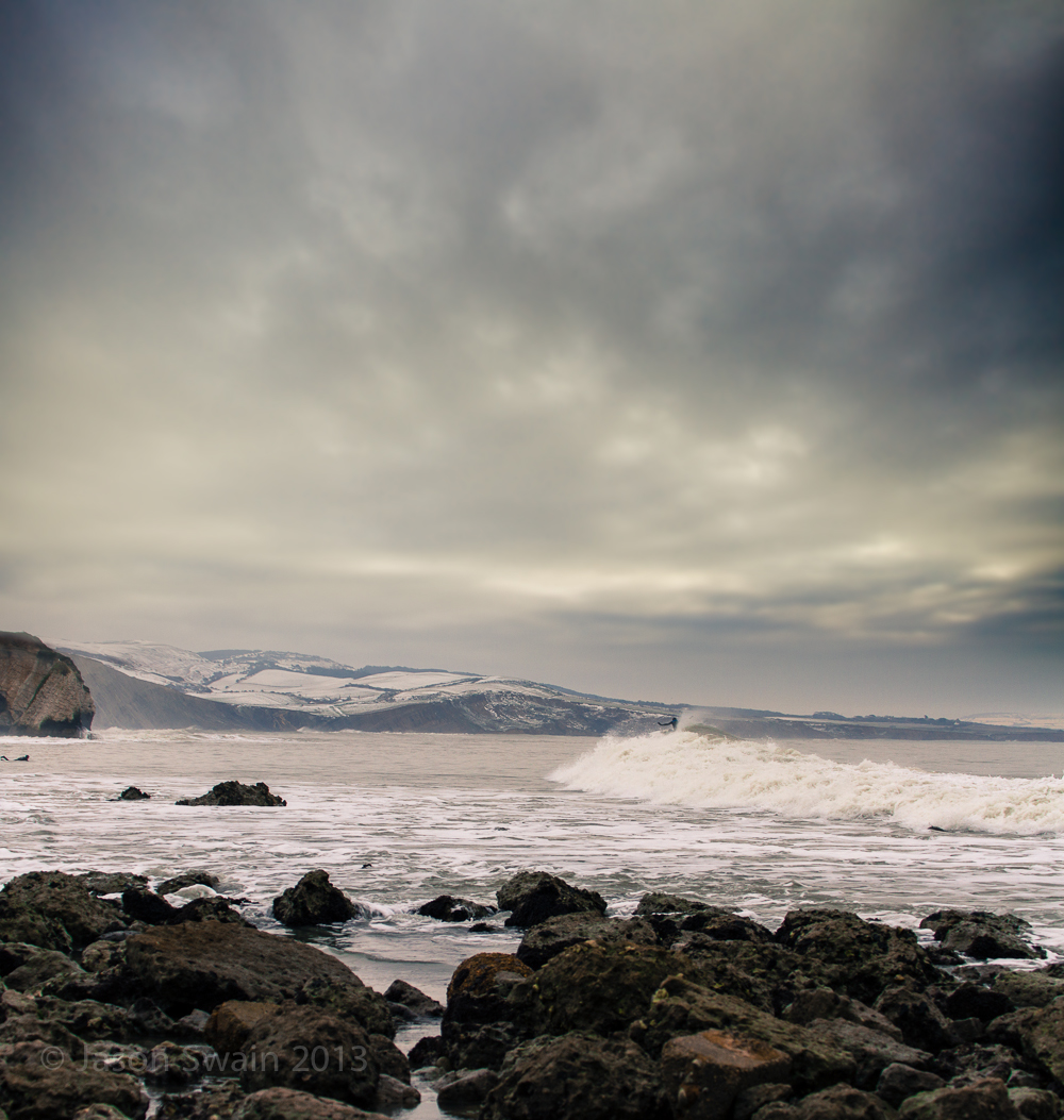 You should have STAYED yesterday by Jason Swain. It’s not often we get the combination of Snow and Surf on the Isle of Wight, and even less often when its good clean solid groundswell at Freshwater Bay. So with limited time on my hands because of work commitments i had to settle for a quick surf myself followed by a quick dash across to the cabbage patch afterwards with my camera. The cabbage patch was the perfect spot to get the right angle to shoot the waves with the snowy hills at Compton Farm in the background.